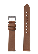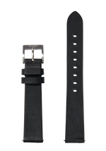 Stainless steel buckle with genuine leather band loop.