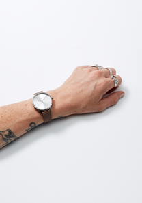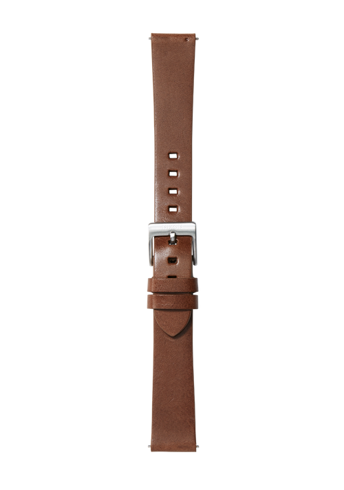 Stainless steel buckle with genuine leather band loop.