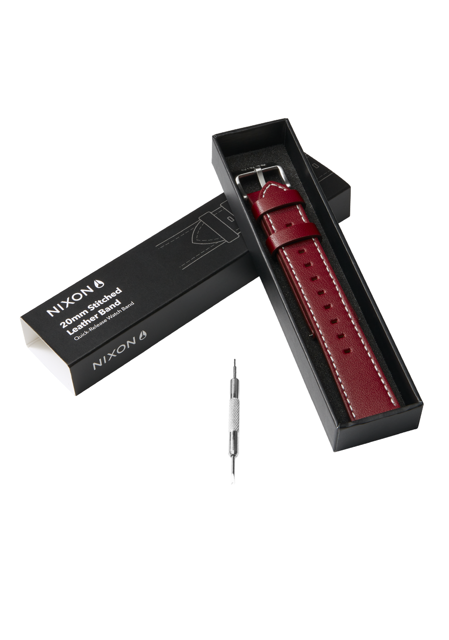 Just like our standard leather band, kick it up a notch with 20mm Stitched Leather Band. A contrasted stitch and upgrade to first class. It's 20mm tapered down for a balanced fit with calf suede backing.