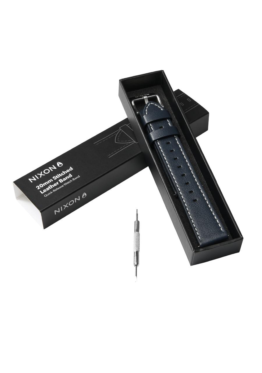 Just like our standard leather band, kick it up a notch with 20mm Stitched Leather Band. A contrasted stitch and upgrade to first class. It's 20mm tapered down for a balanced fit with calf suede backing.