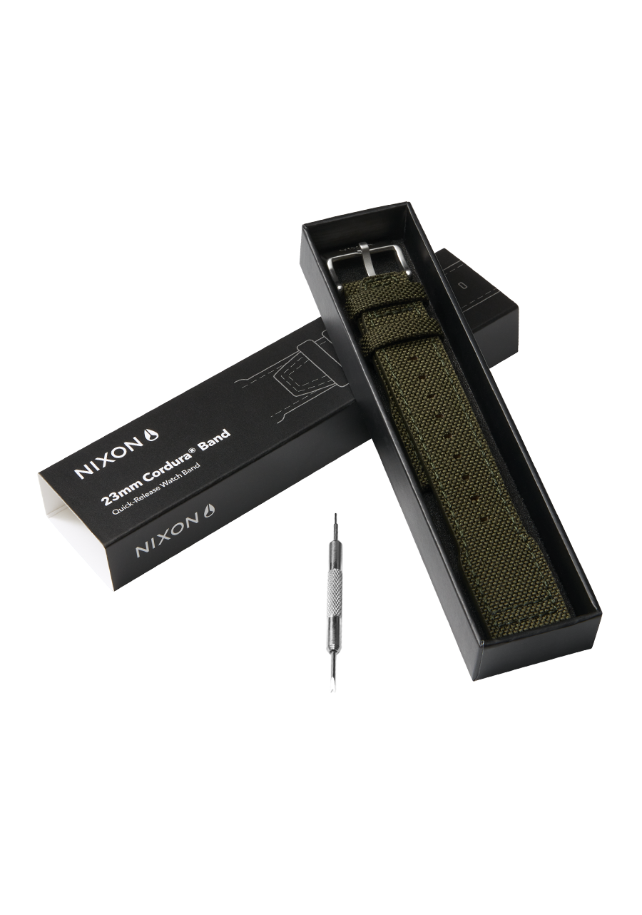 Time is what you have with this band. The 23mm Canvas Band is built with Codura® canvas on the outside to withstand all the elements, with ultra soft calf suede to keep your comfortable on the inside, it only gets better with time.