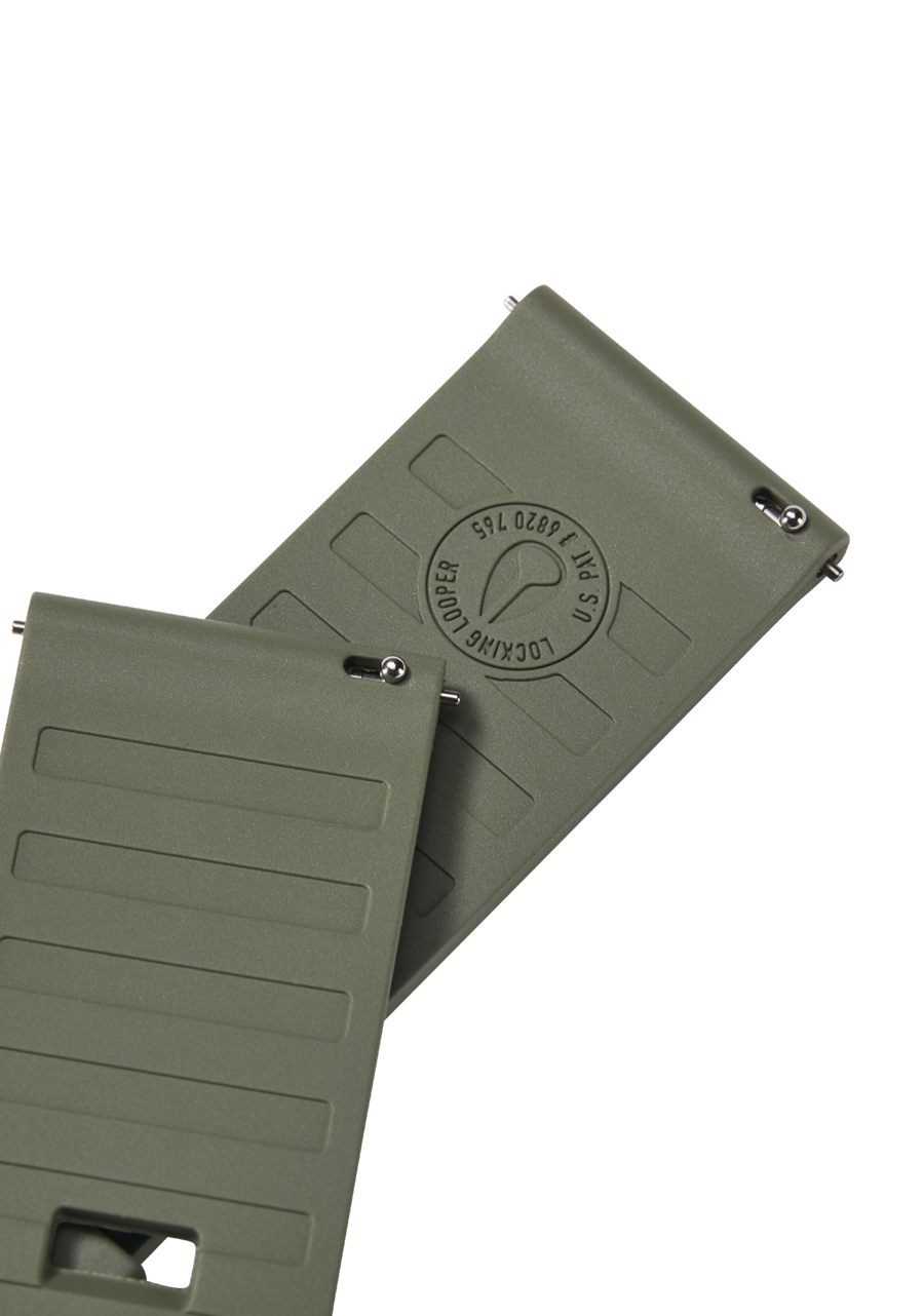 Stainless steel buckle with FKM rubber Locking Looper™.