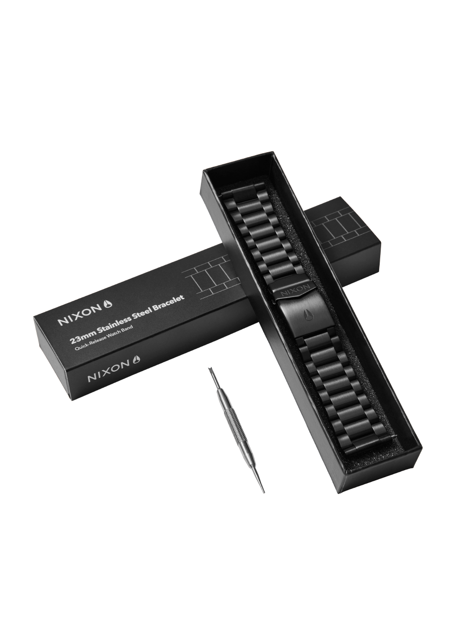 Perfectly weighted and brushed just right, this modern 23mm Stainless Steel Band will catch all the eyes in meetings and make disco balls jealous.