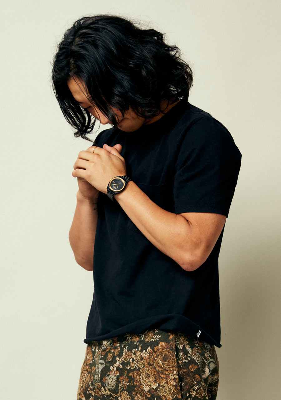 The Time Teller fuses classic design with a touch of rebellion. A gold Time Teller features a gold rose taking center stage and an all-black Time Teller featuring custom bandana pattern and gold chain bezel. Both unique designs giving a nod to Tupac’s lasting impact on the culture.