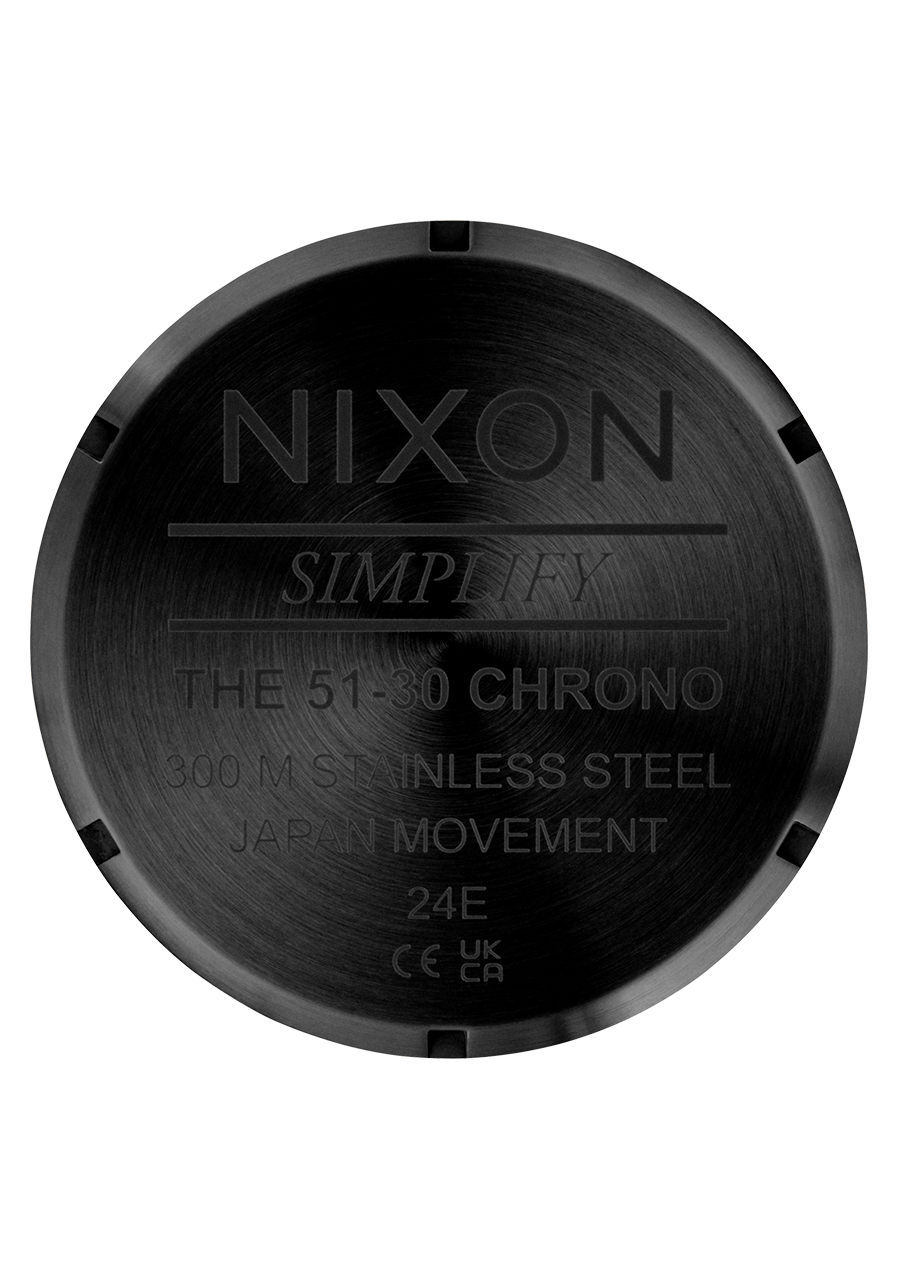 51mm custom solid stainless steel case with a 300 meter / 30 ATM water rating. Includes a unidirectional rotating bezel with countdown timer, hardened mineral crystal, screw down crown and pushers, stainless steel screw down caseback and screw pin lugs.