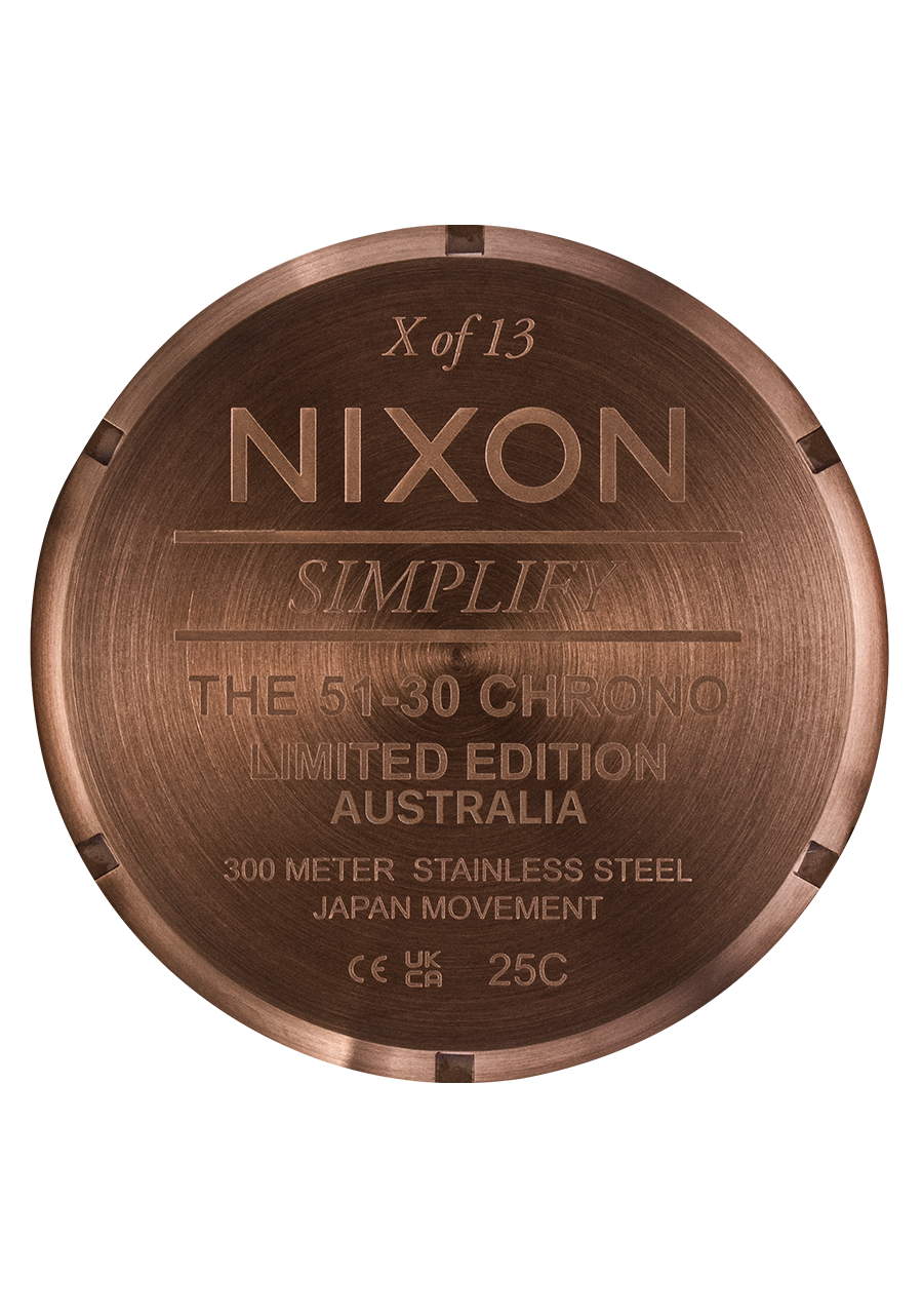 The fourth edition of the Friday the 13th 51-30 Chrono is sweeter—and bolder—than ever. Featuring a solid stainless steel band and case coated in a rich chocolate tone, this limited-edition timepiece delivers a unique, elevated look that stands out from the crowd. Designed to push your luck even further, its pro-level chronograph and 300 meter / 30 ATM water rating gives you the upper hand when you need it most. Only 13 are available in each region: US, EU, and AUS. Individually numbered.