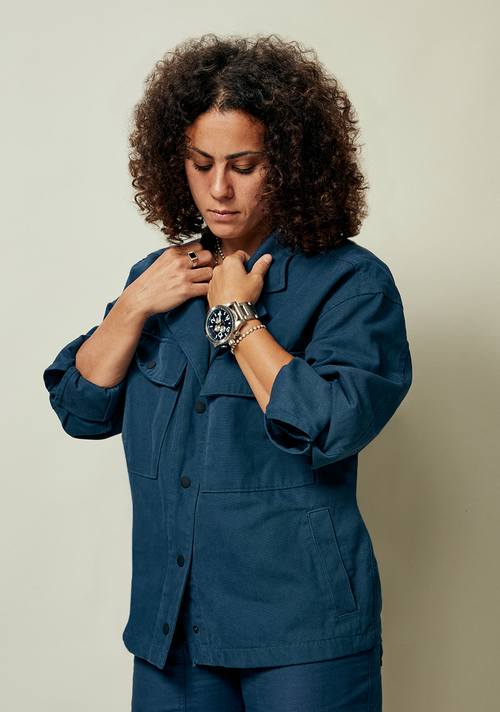 The crown and pushers are located on the 9 o'clock side of the case instead of 3 o'clock to prevent "wrist bite" during active use. Six-hand chronograph with 24-hour and second timer subdials.
