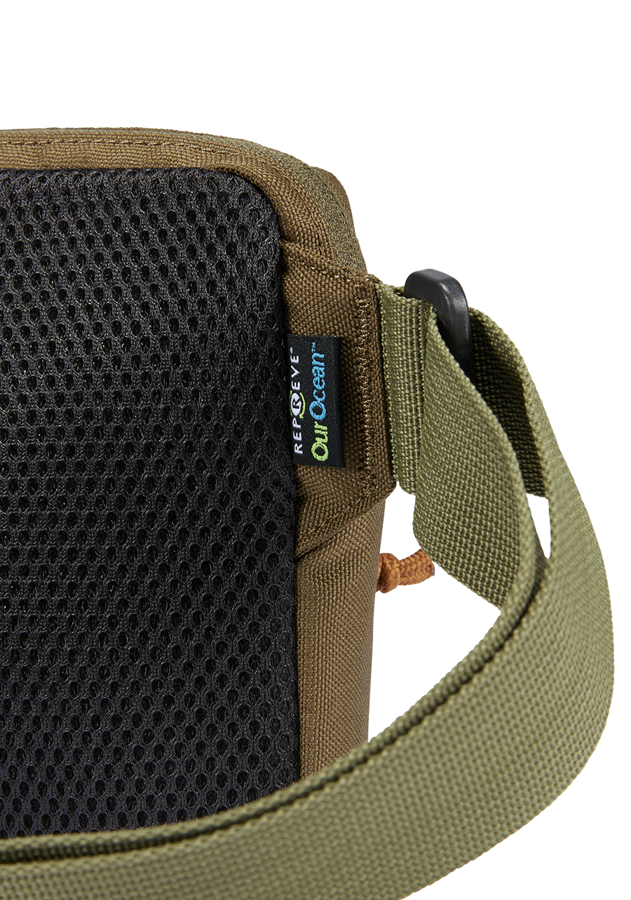 600D polyester exterior made from REPREVE® Our Ocean™ recycled ocean plastics. 70D polyester interior made from REPREVE® recycled plastics