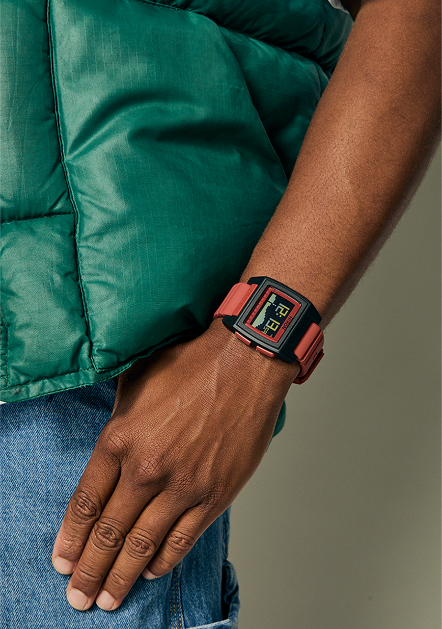 Make sure the waves you catch are cleaner with the new and improved Base Tide Pro. Now made with #tide recycled ocean plastics, each watch keeps garbage away from the water while keeping you up to date with pre-programmed tide info from 550 beaches from around the globe. It's water-resistant down to the pushers, and the ventilated, silicone band stays in place thanks to our double Locking Loopers™.