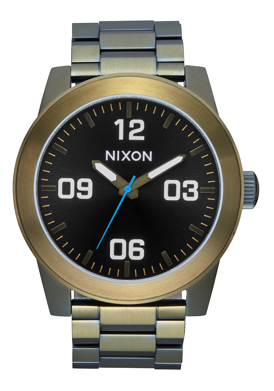 The Nixon Corporal watch uses a Miyota Japanese quartz 3-hand movement.