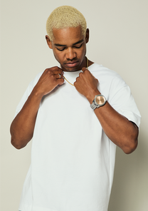 The field watch with a clear, tactical advantage. The face is protected by a recessed crystal and the oversized bezel brings out the best in rugged durability. Its functional design combined with details like faceted links that look like a mountain range when viewed from the side means the Corporal always has the high ground.