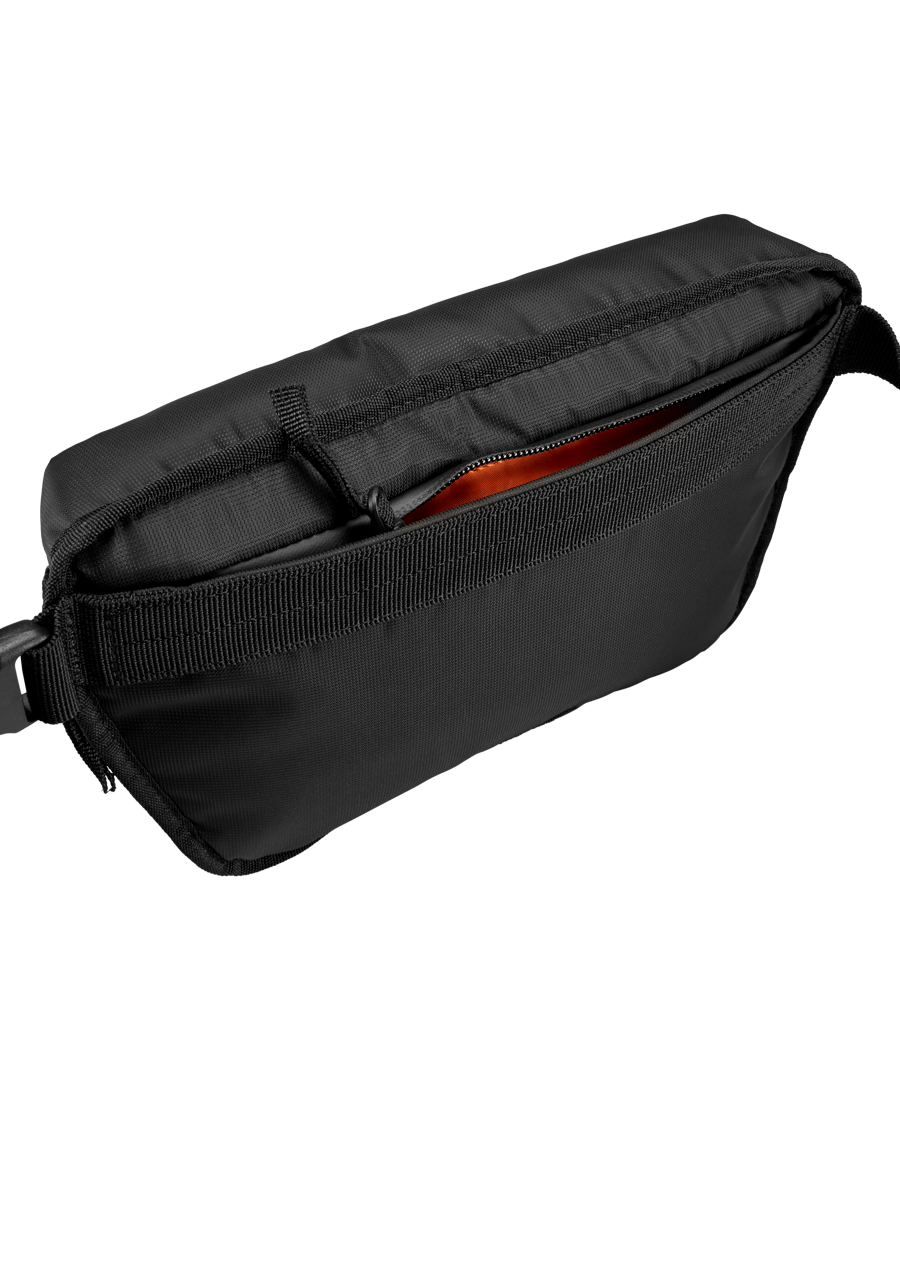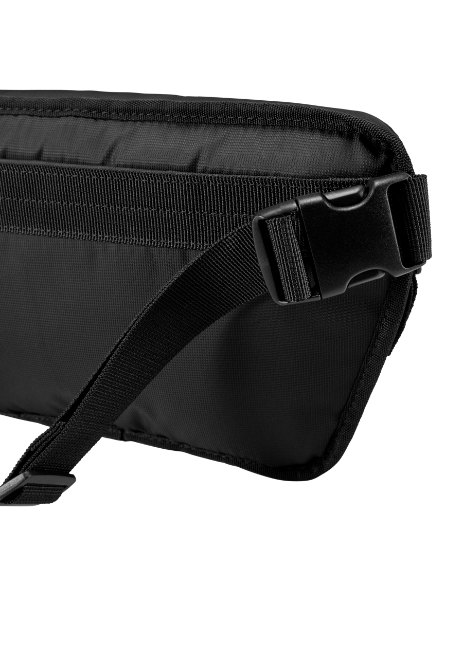 Versatile carry, worn around your hips or over your shoulder. Adjustable webbing strap and buckle. Concealed back zippered pocket. Interior mesh slip-pocket with a key fob. Plus, weather-resistant coated exterior zippers.