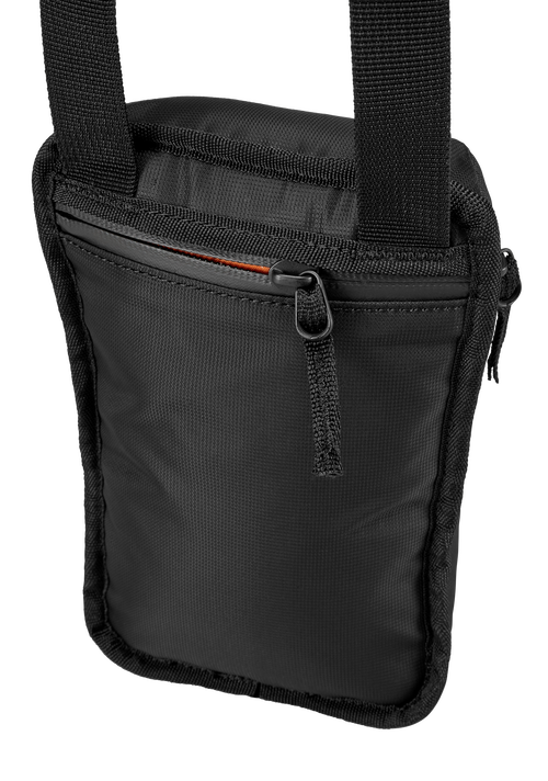 Zippered top-load main compartment. Back zippered stash pocket. Interior mesh slip-pocket with a key fob. Plus, weather-resistant coated exterior zippers.