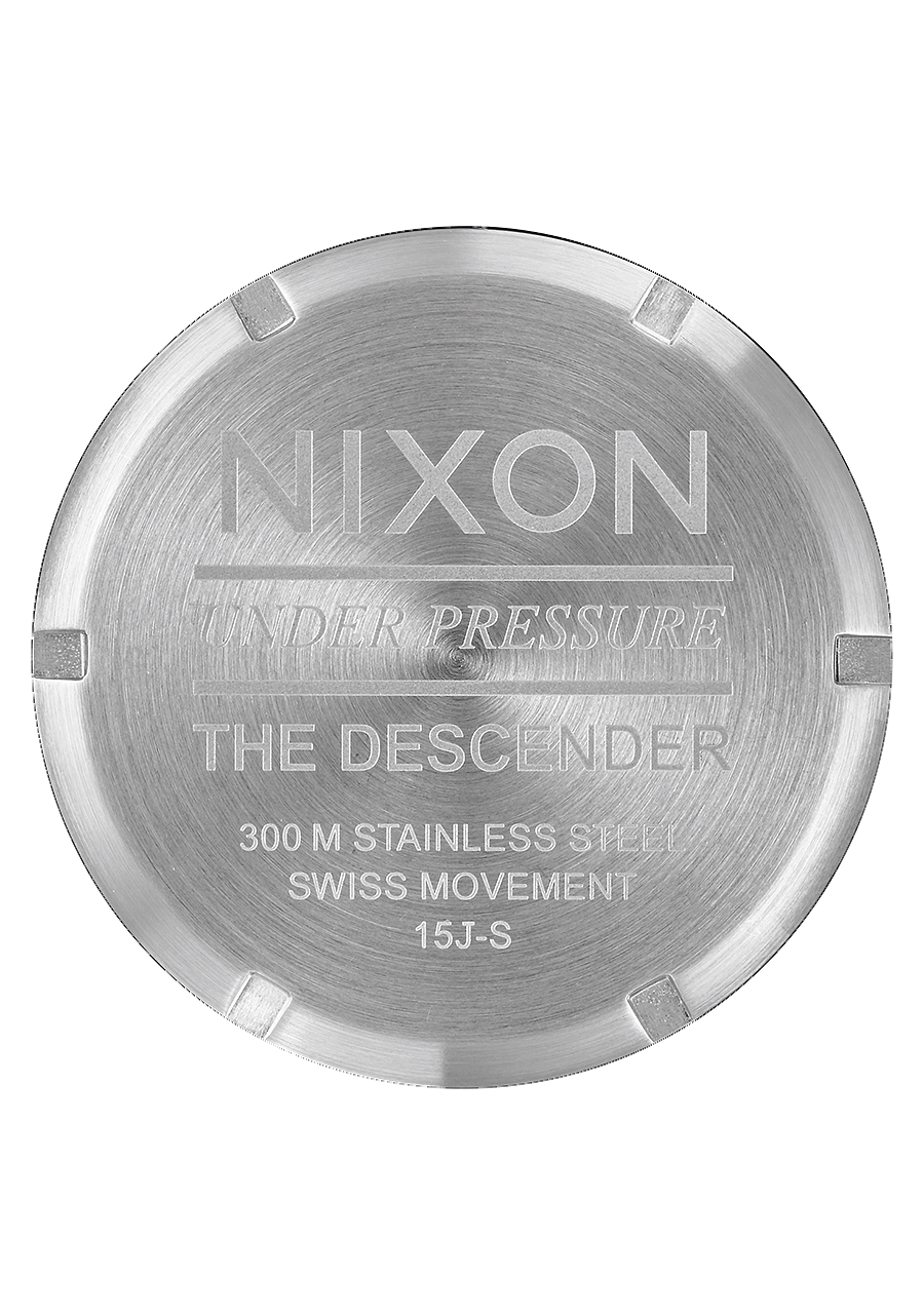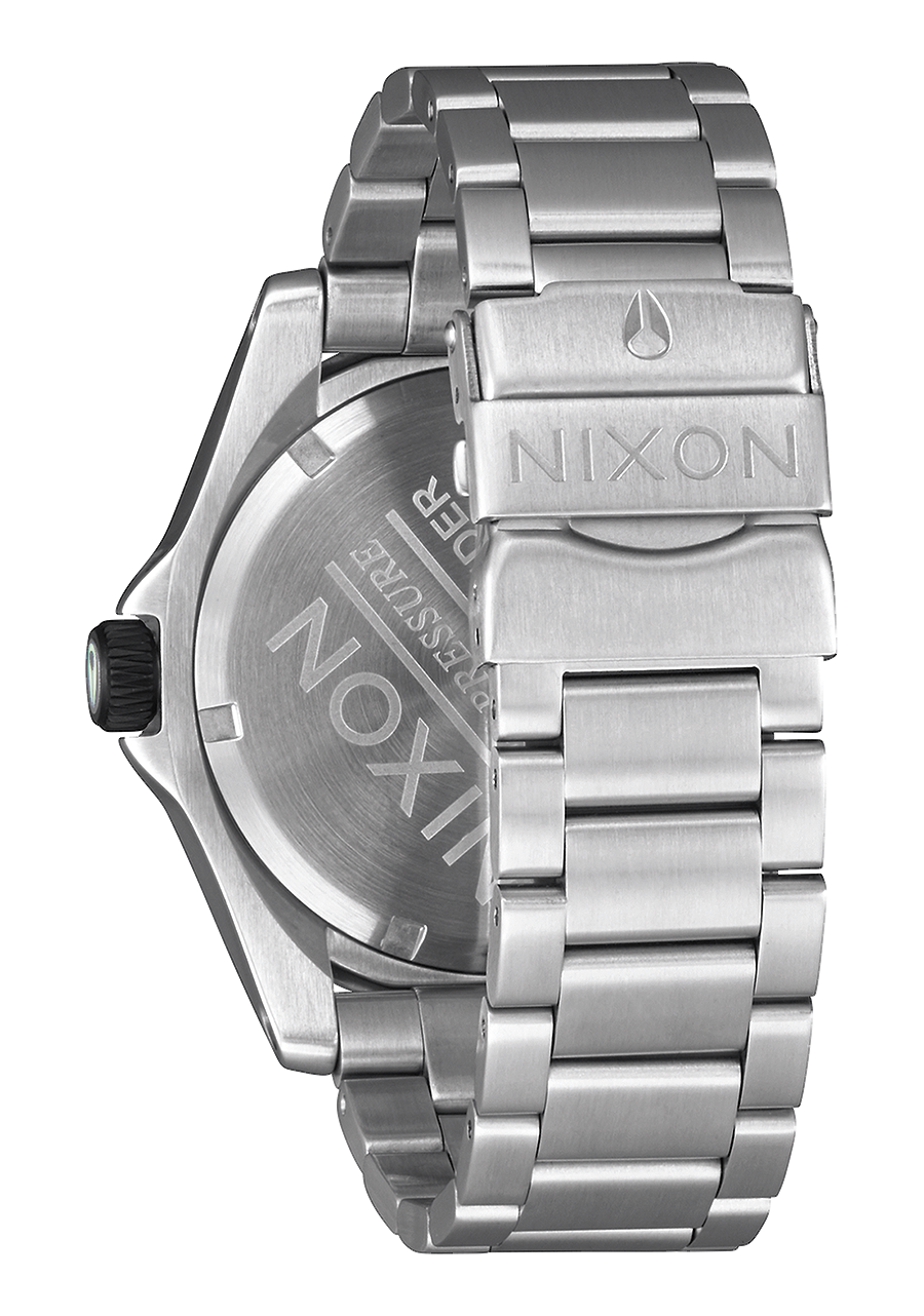 45mm, 300 meter/30 ATM custom stainless steel case with domed hardened mineral crystal and anti-glare treatment on the underside of the crystal, Unidirectional stainless steel bezel, contrast plated stainless steel bezel insert with color fill elapsed timer markings, custom screw bar lugs, triple gasket crown, and stainless steel screw down caseback.