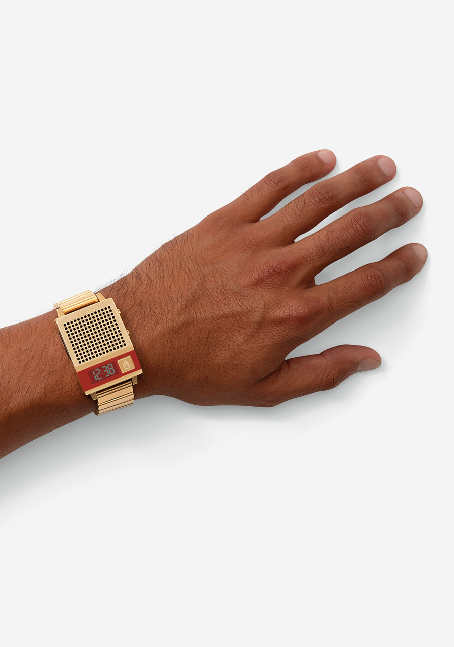 A Nixon icon that doesn’t take itself too seriously. Press a button and it yells the time and much more. Comes fully juiced, but when it does run low just plug in to your USB. This is easy, eye-free time telling that’s easy on the eyes.