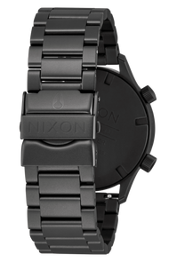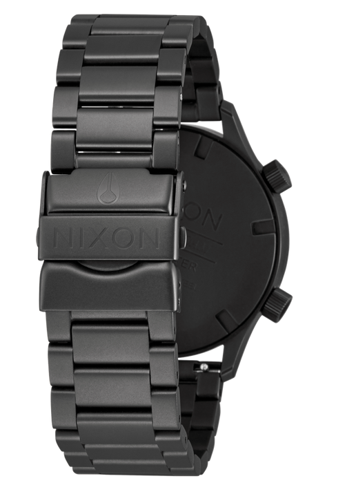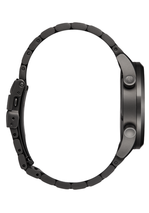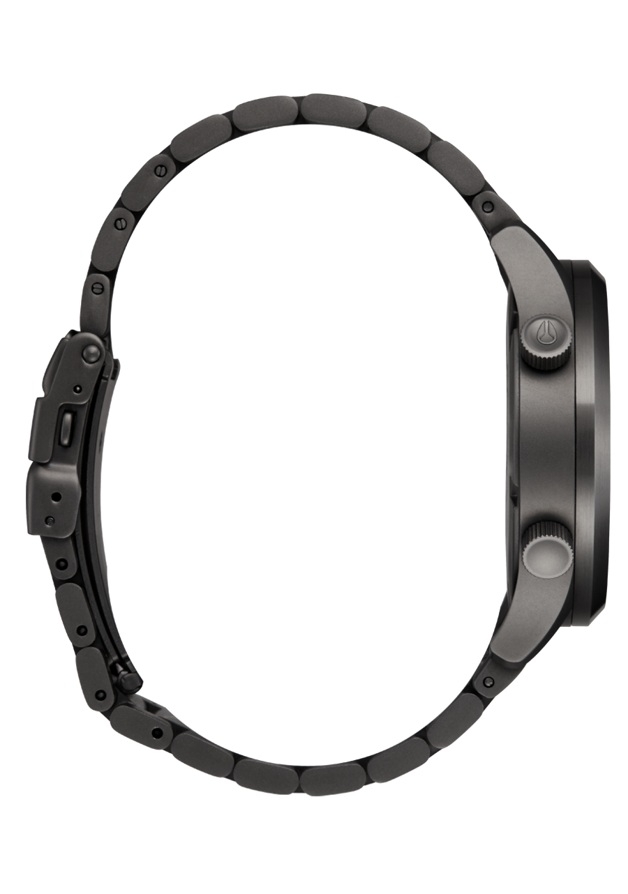 The Nixon Drifter GMT features a custom solid stainless steel case and a stainless steel quick release bracelet.