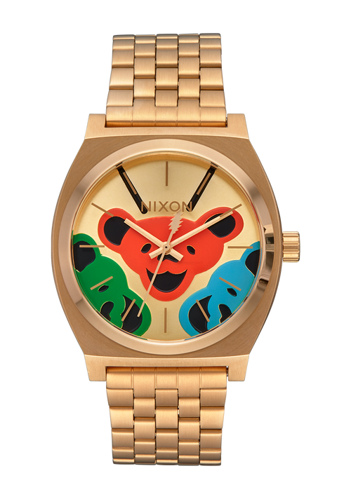 Bears, lightning bolts, skeleton hands and roses. An icon of Nixon heritage meets musical legends, the Grateful Dead Time Teller's vibe celebrates simple sophistication and funky experimentation. The minimalist design is the perfect canvas for some grate aesthetic expression, while its 10 ATM / 100m water rating means getting wet is no big deal. It's always down to collaborate and with a full spectrum of finishes, whatever your style, there’s a Grateful Dead Time Teller for you.