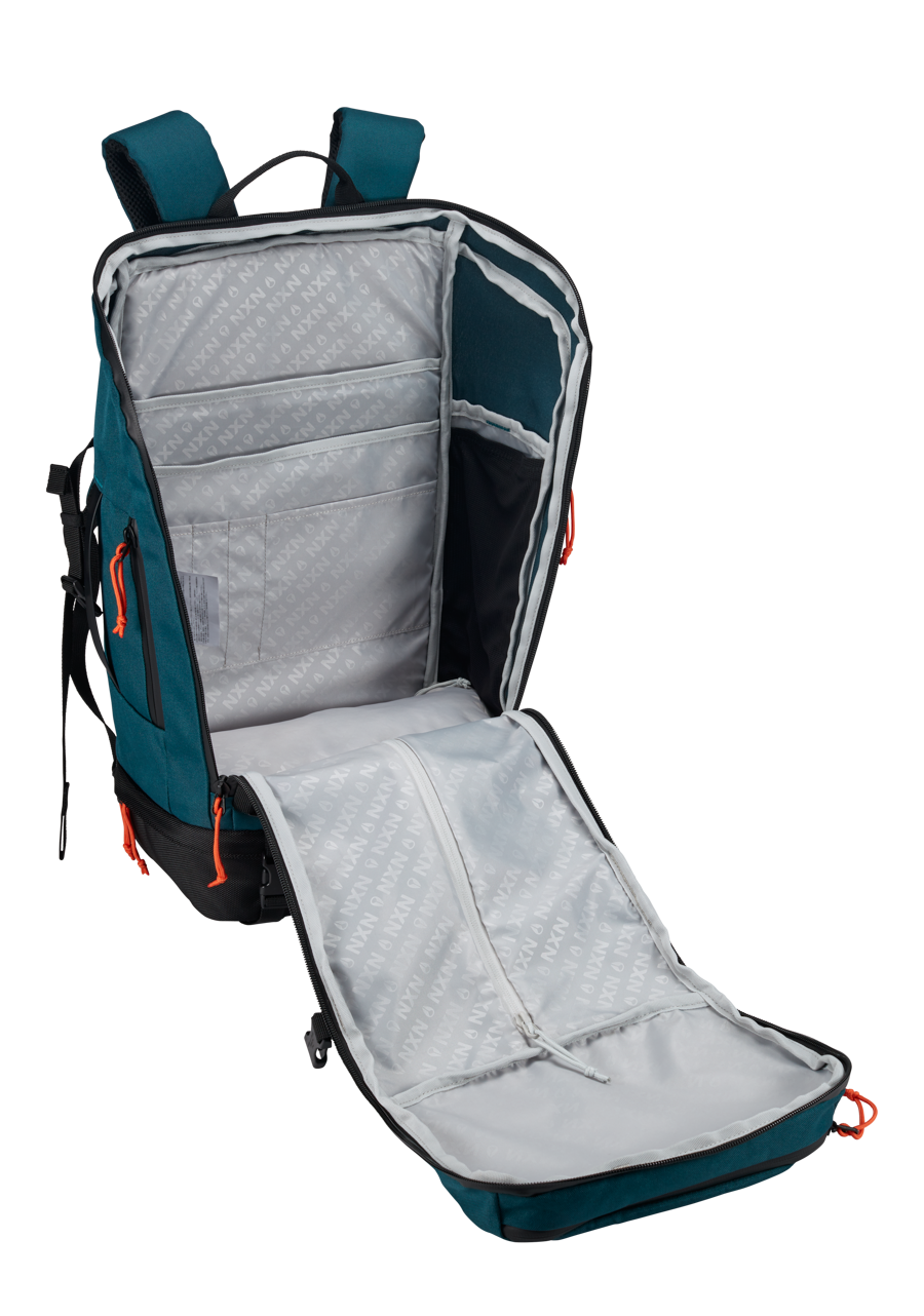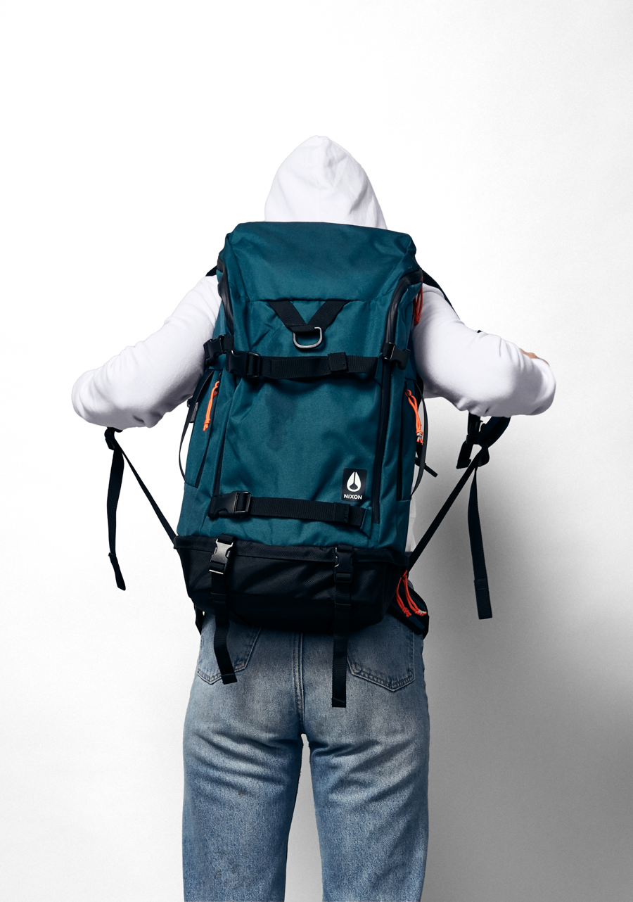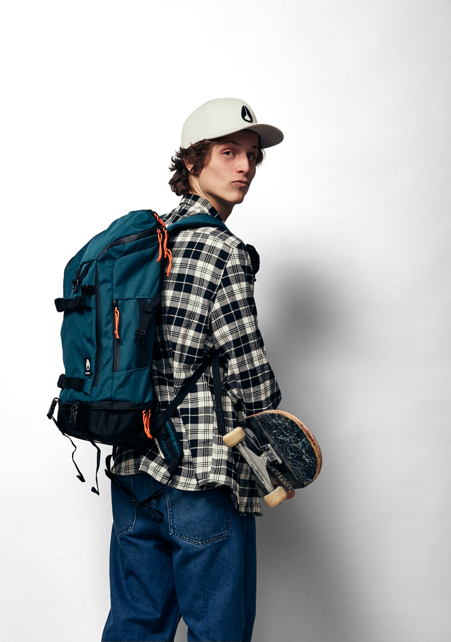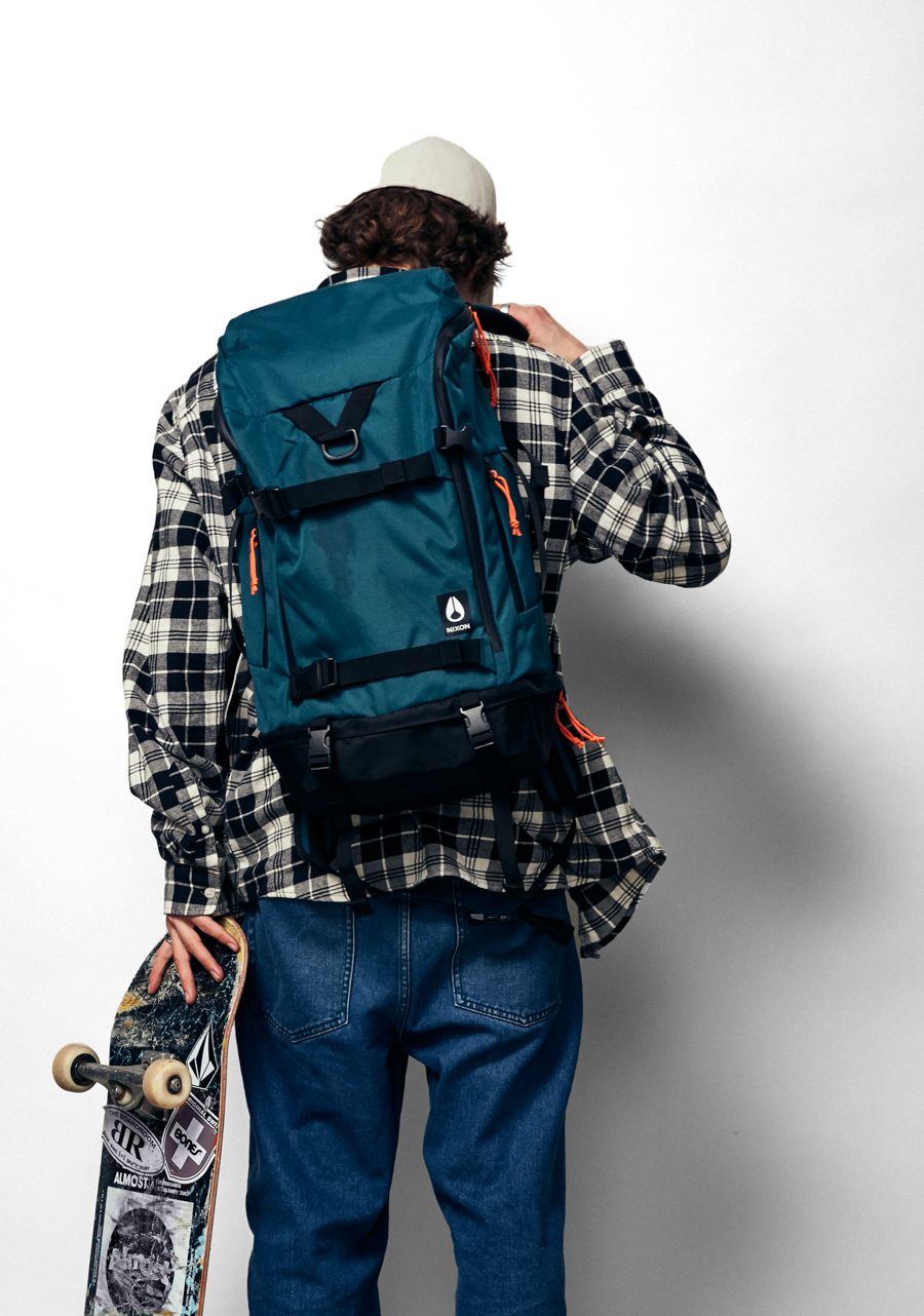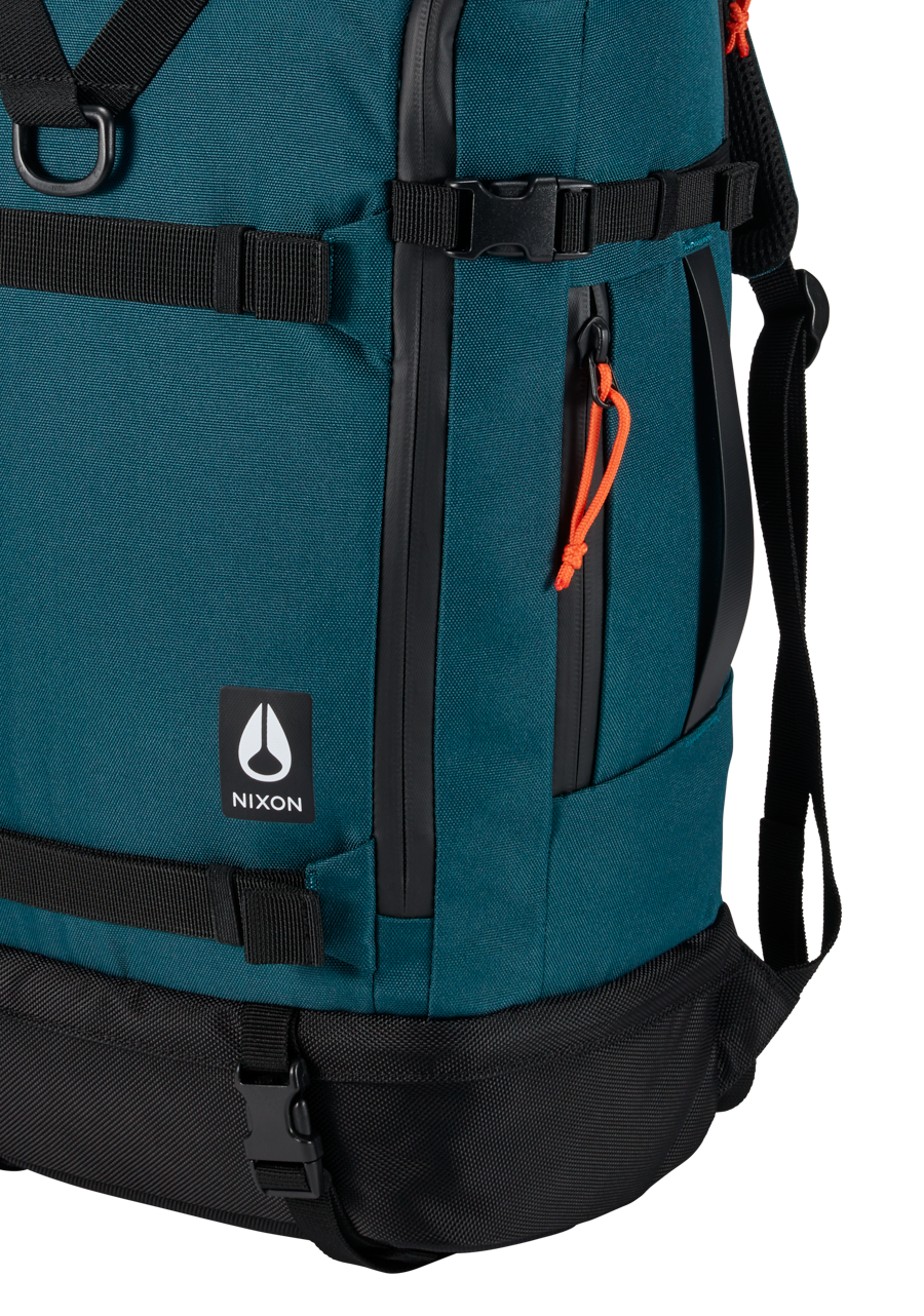 Laptop (16"") storage with external zipper access. Large main compartment features internal organizers. Zippered shoe/towel compartment keeps wet or dirty gear separated. Skate straps offer you secure storage for your board. Small removable mesh pocket attached to the strap, great size for travel sized hand sanitizer.