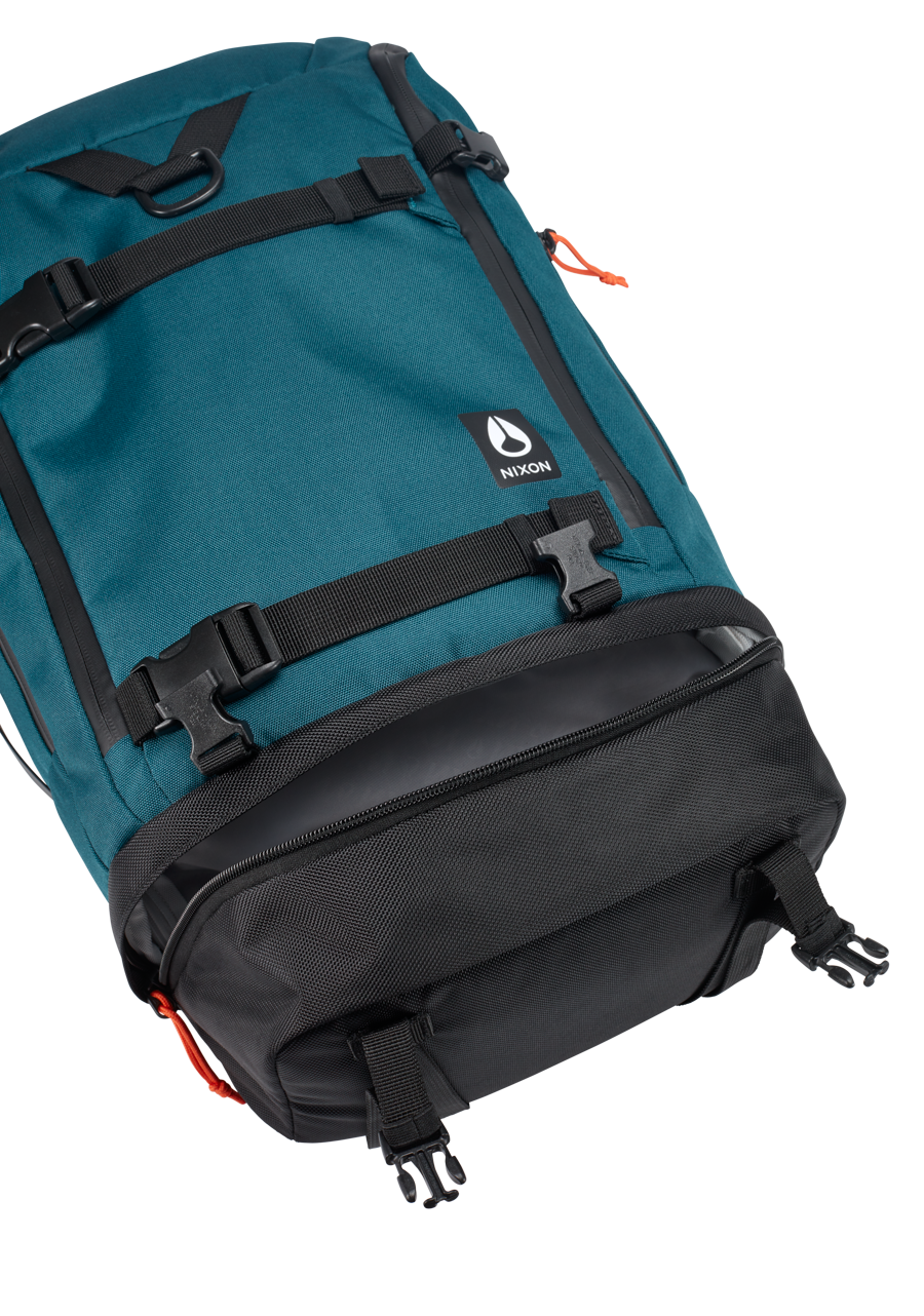 600D polyester exterior made from water-resistant recycled plastics. 1200D Ballistic recycled PET Bottom Panel. 200D Polyester interior made from recycled PET.