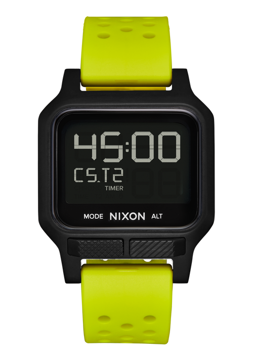 The Nixon Heat watch offers athletes and surfers multiple timer options, a chronograph, and a Final Countdown timer with a 60-second SEND notification to enhance performance during training sessions. Additionally, it features a custom LCD module and a rugged yet slim design to withstand rigorous conditions.