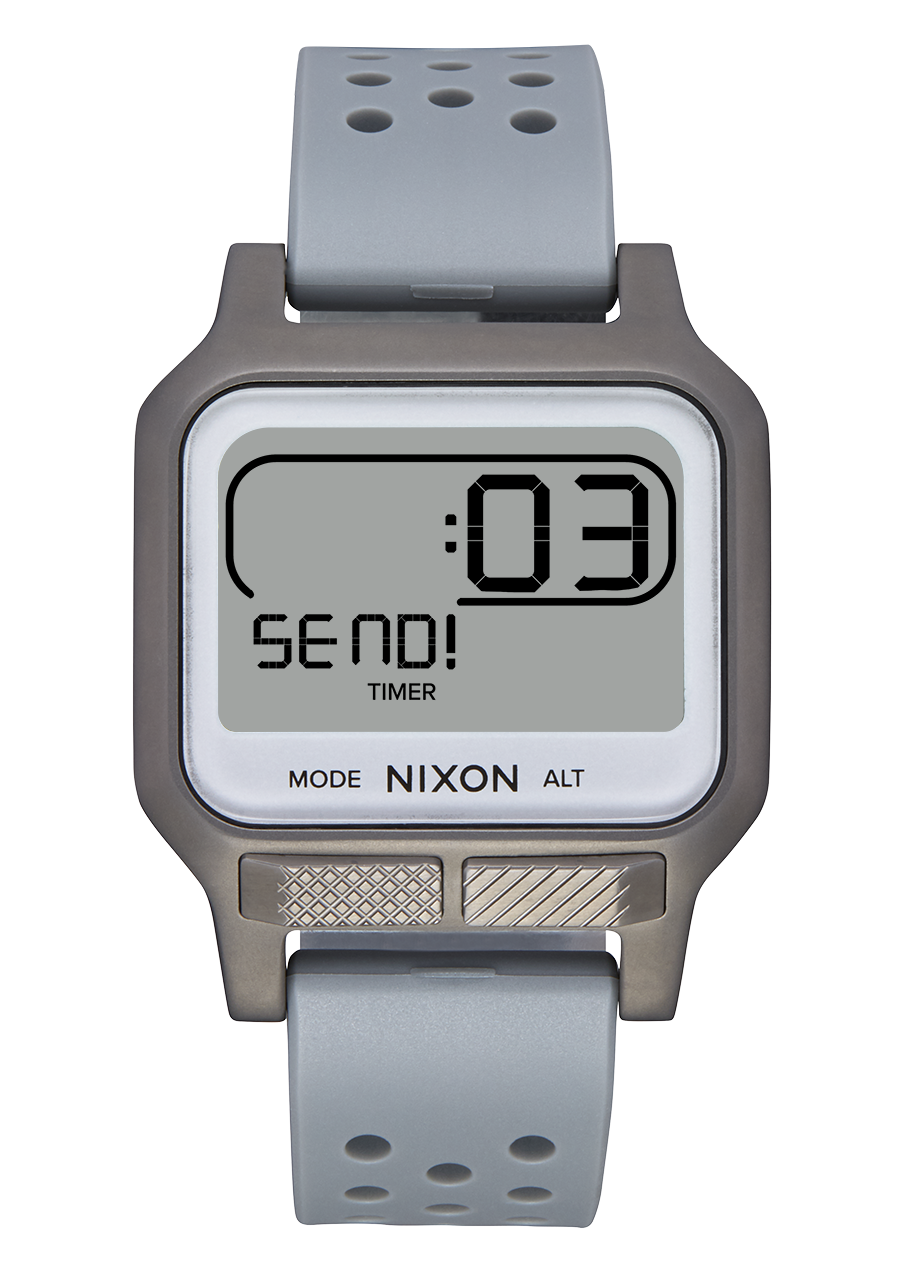 The Nixon Heat watch offers athletes and surfers multiple timer options, a chronograph, and a Final Countdown timer with a 60-second SEND notification to enhance performance during training sessions. Additionally, it features a custom LCD module and a rugged yet slim design to withstand rigorous conditions.