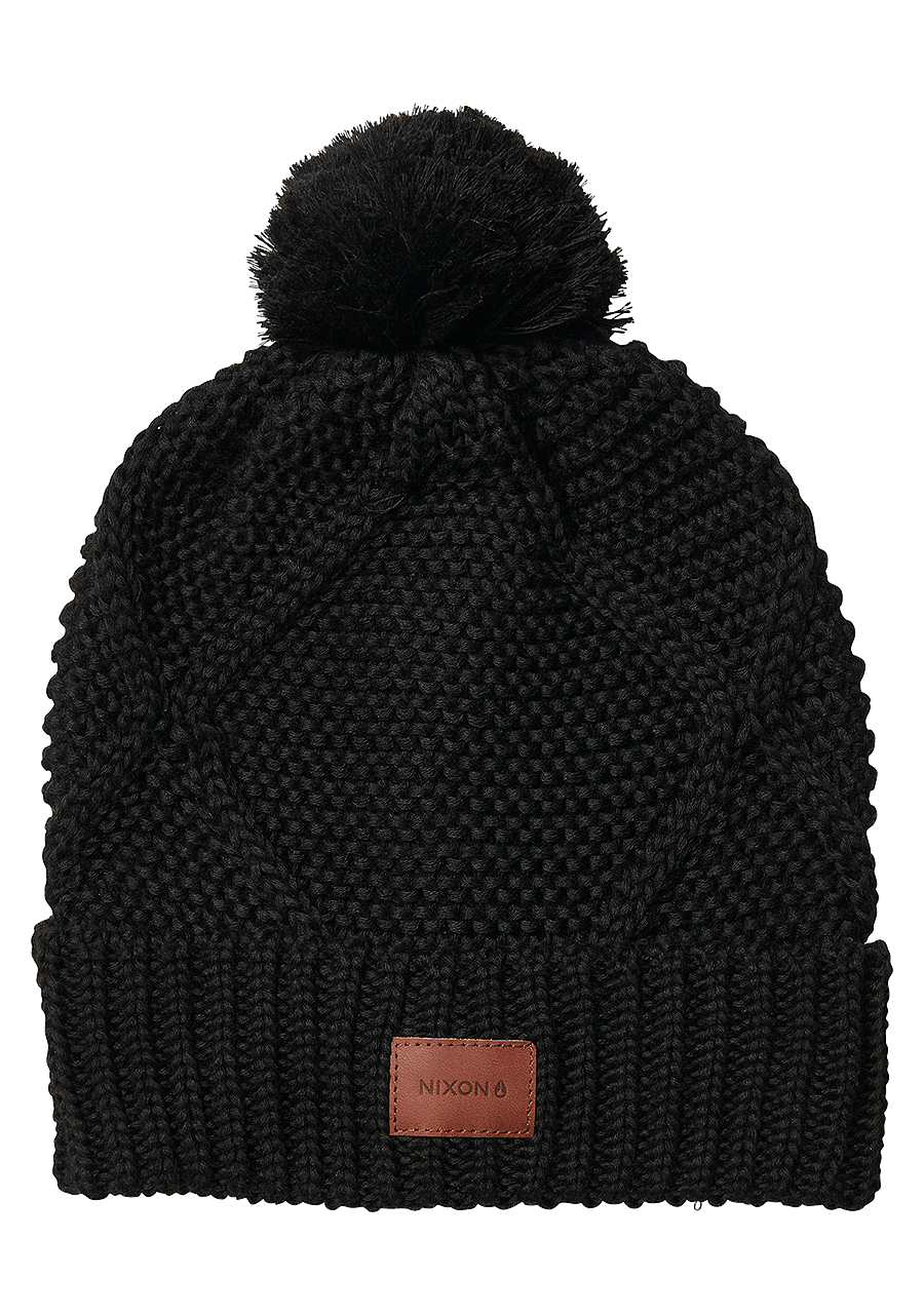 Aprés vibes abound with this deep, cable knit pom beanie. The loose knit is a bit more casual, but the debossed leather patch on the cuff is pressed to impress. See you at the afterparty,