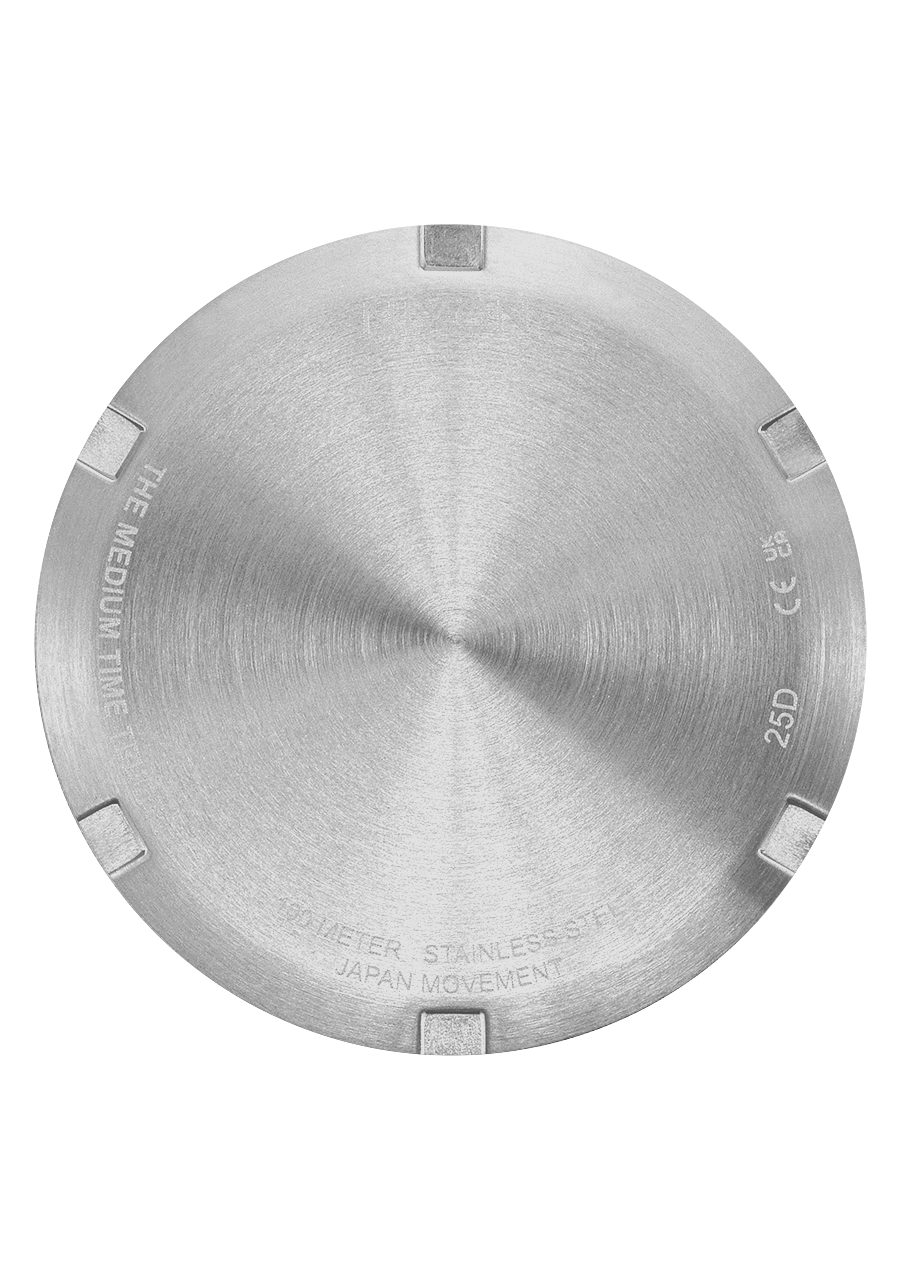 The case and bracelet of the Medium Time Teller are made from stainless steel. It has a 100 meter / 10 ATM water rating, which can withstand swimming and everyday wear.