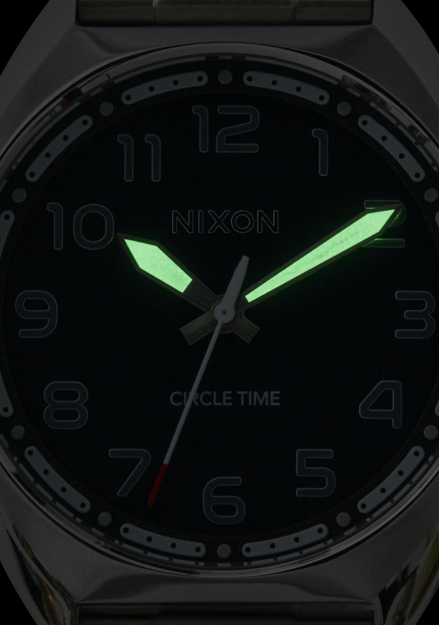Taking it a step further, the silicone watch band features a locking looper for extra security and quick-release so you can swap bands instantly. The 10 ATM / 100m water rating means a pre-work surf is no problem. Plus, luminescent hands keep the party going with night visibility.