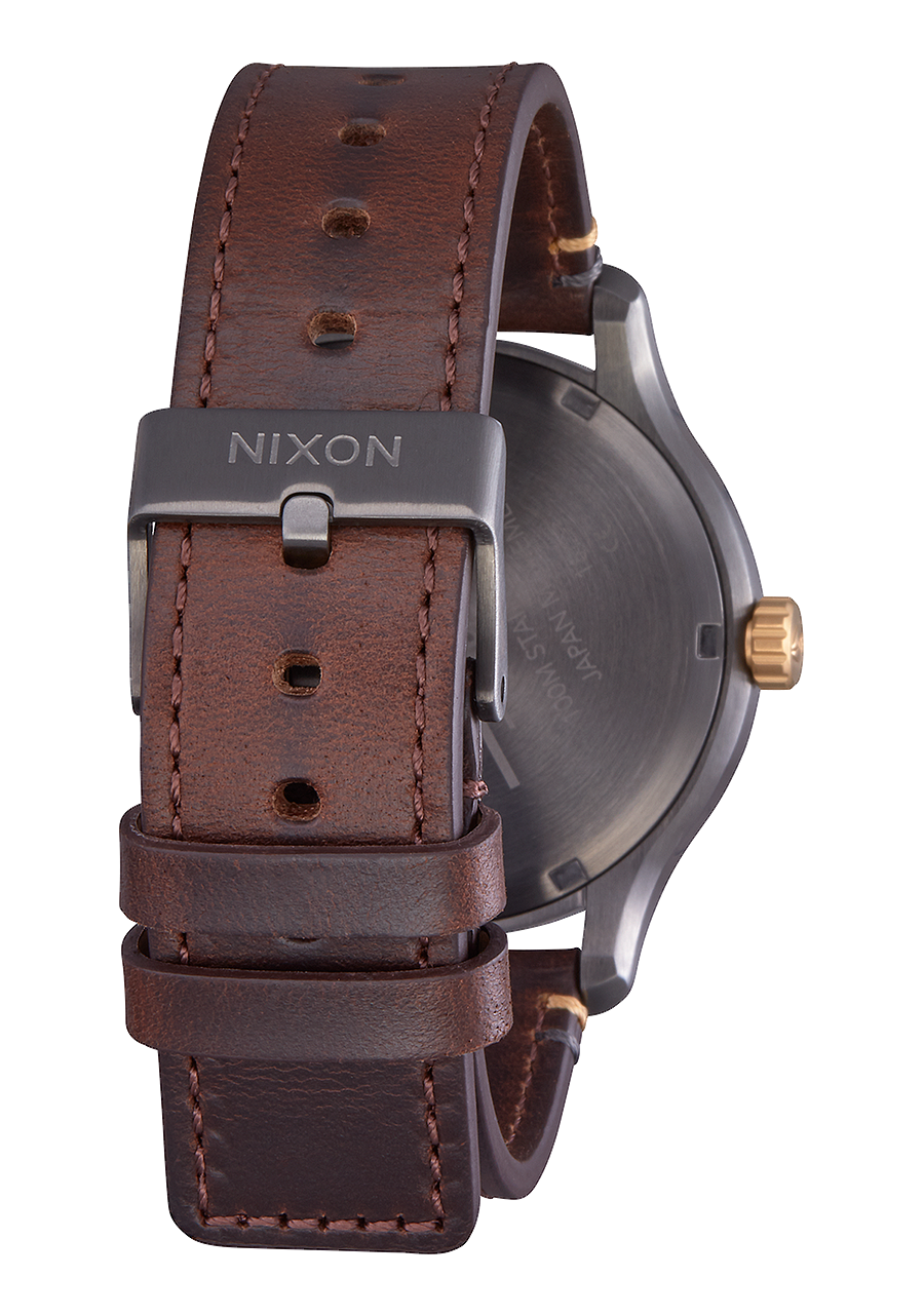 42mm custom solid stainless steel case with a 100 meter / 10 ATM water rating. Comes with a hardened mineral crystal, stainless steel screw down caseback and spring pin lugs.