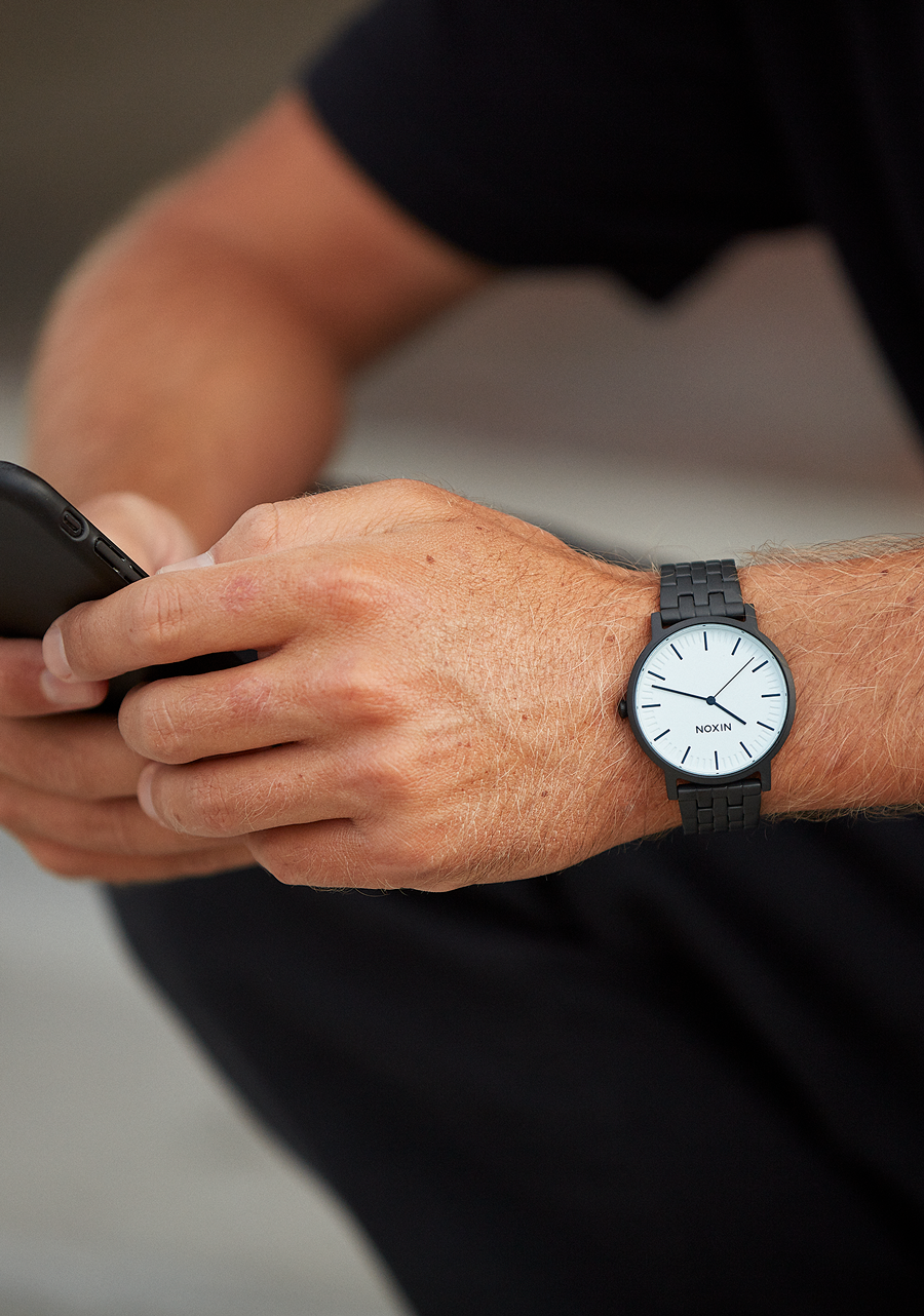 Ultra-thin, tapered watch case for minimal weight and maximum wearability.