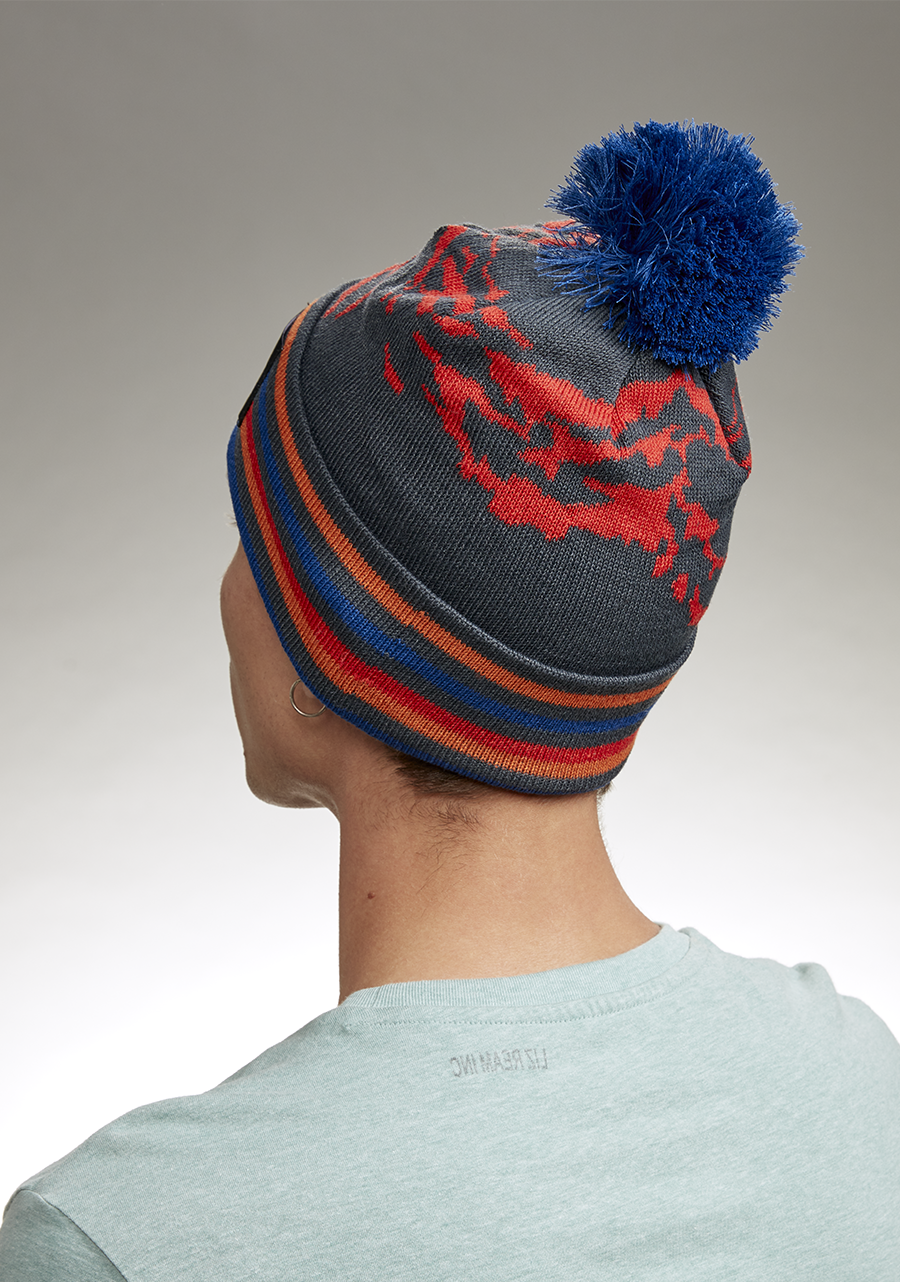 Wear it to the top. The Ridge Pom Beanie rocks a jagged, jacquard moutainscape on a 100% recycled polyester shell. It's built to be worn in nature, and help protect it.