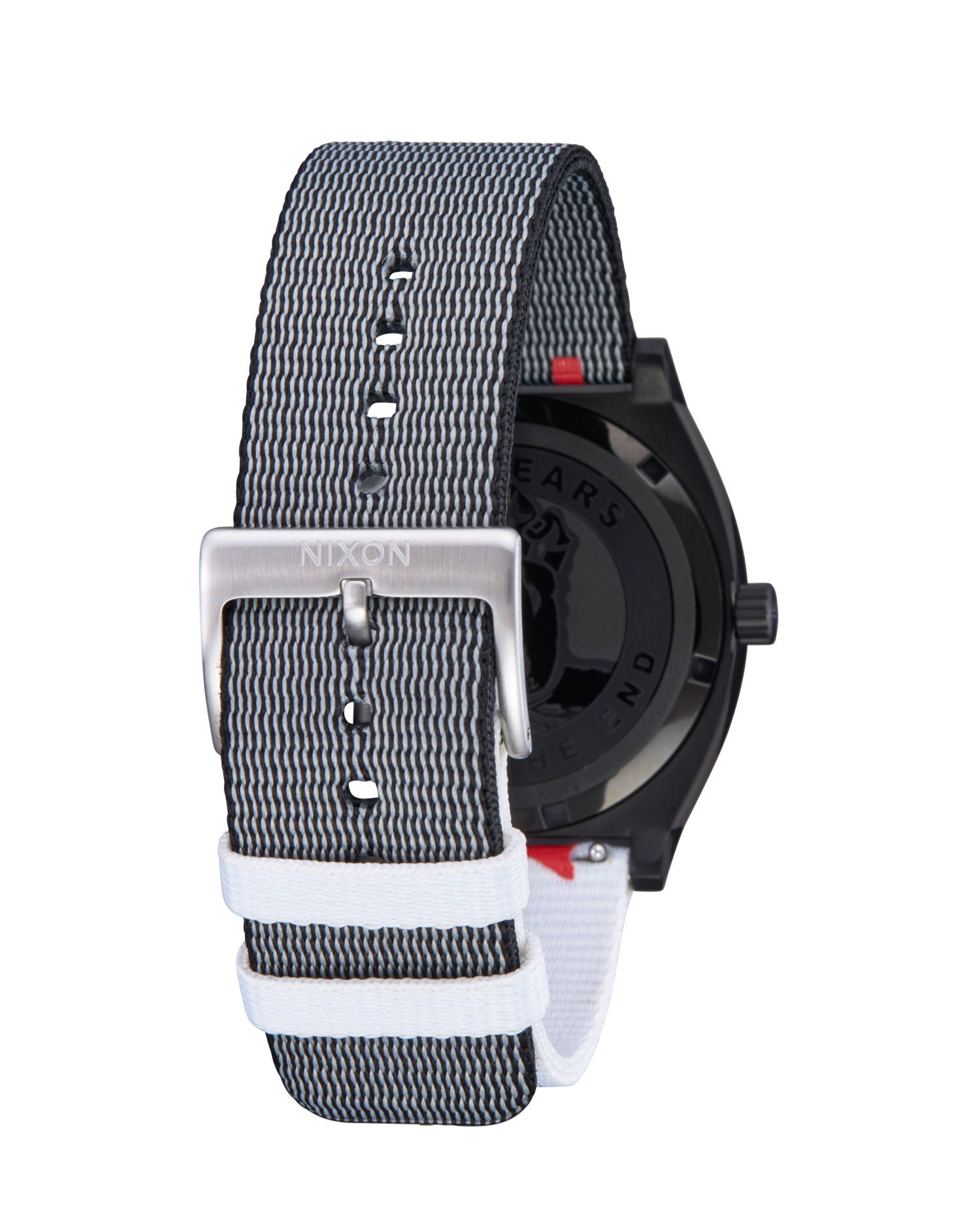 20mm polyester watch band with Santa Cruz run-through logo, quick release band attachment and a stainless steel buckle.