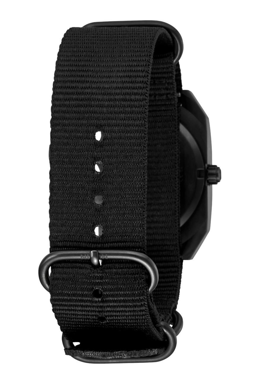 An update of a classic Nixon style, the Scout is a newly released analog watch that is always ready to go. Its durable pass-through nylon band allows for an extra strong hold and easy adjusting on your wrist. Plus, the robust square construction and 10 ATM/100 meter water resistance rating of its case make the Scout prepared to take on any environment, wet or dry. It is Durable. Refined. Secure.