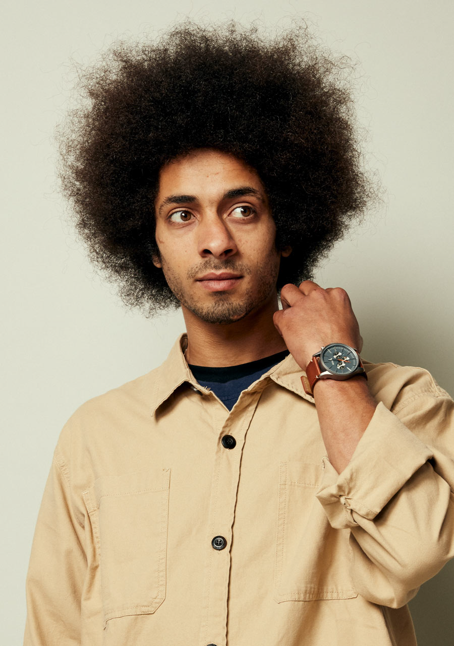 Dial features applied stick indices, printed seconds track and custom molded hands.