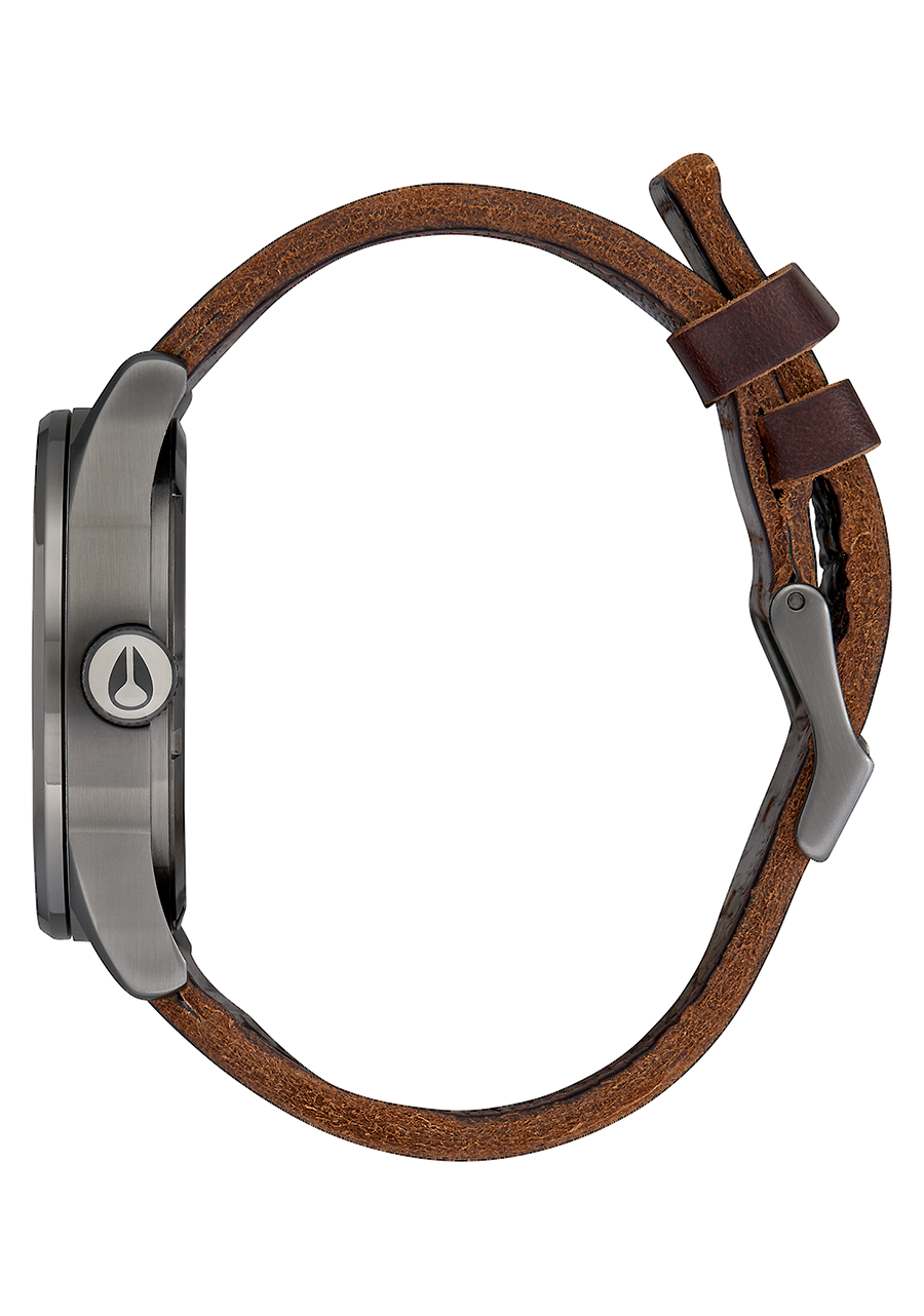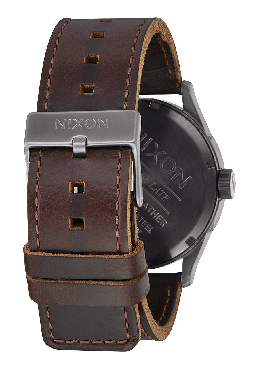 42mm custom solid stainless steel case with a 100 meter / 10 ATM water rating. Comes with a hardened mineral crystal, triple gasket crown with enamel fill, stainless steel screw down caseback and spring pin lugs.