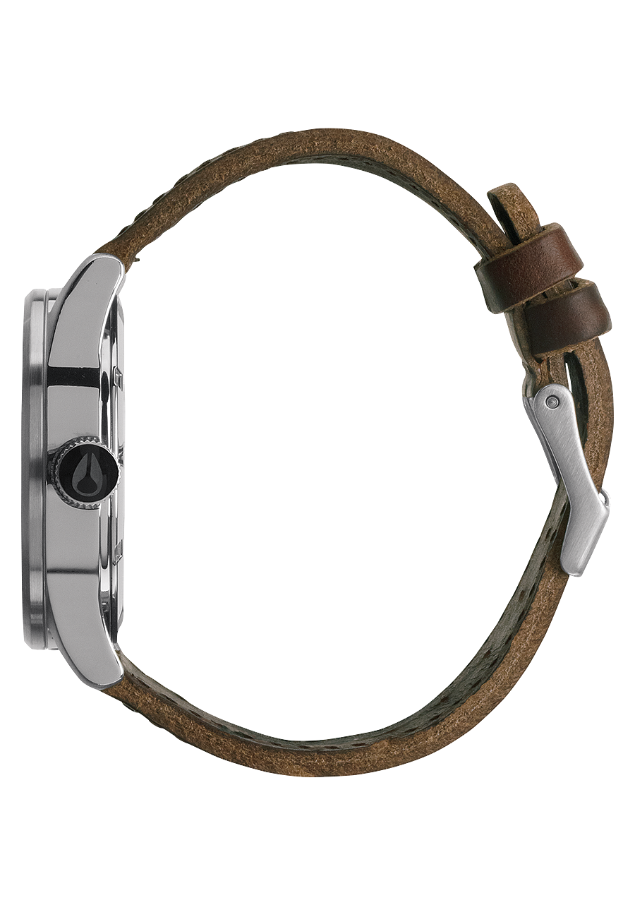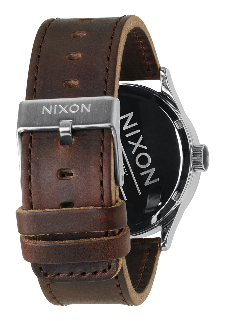 42mm custom solid stainless steel case with a 100 meter / 10 ATM water rating. Comes with a hardened mineral crystal, triple gasket crown with enamel fill, stainless steel screw down caseback and spring pin lugs.