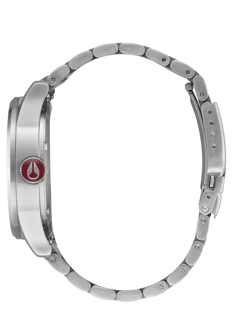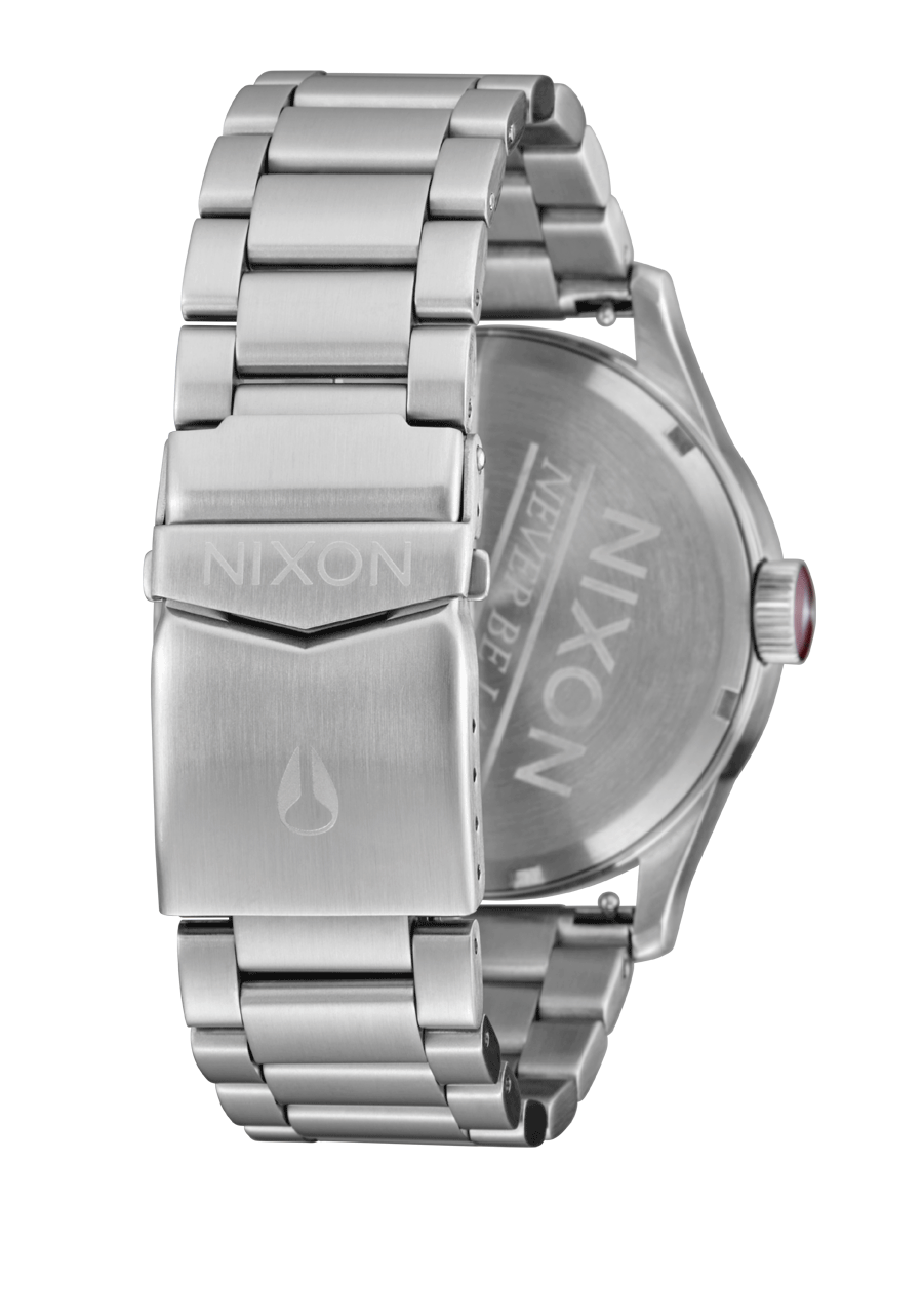 The Nixon Sentry Stainless Steel watch uses a Japanese Miyota 2305 quartz 3-hand movement and features a bilingual day and date function in English and Spanish.