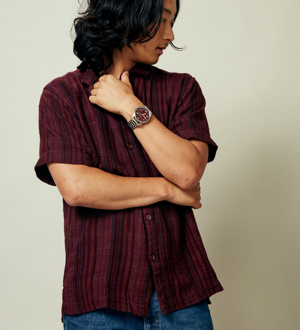 The Sentry is an elegant timepiece with an adventurous side. Think black tie meets block party. The face pops with depth and detail, but the solid stainless steel case, hardened mineral crystal, and waterproof rating of 100m, you don't have to worry about it not being able to hang in the real world.