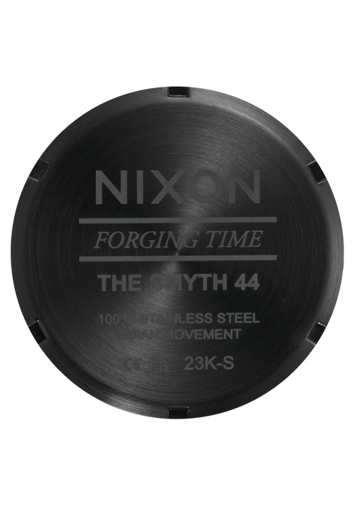 The Nixon Smyth 44 watch uses a sapphire crystal, providing superior scratch resistance and clarity.