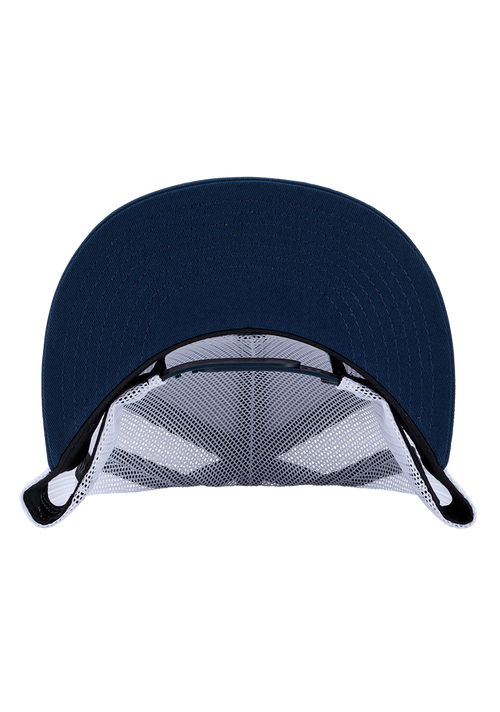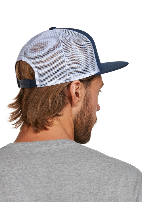 Color blocked, semi-deep trucker with tons of color and pattern combinations. The front panel and bill really pop against the mesh back, and the silicone logo patch on the front gives depth to this handsome headcover.