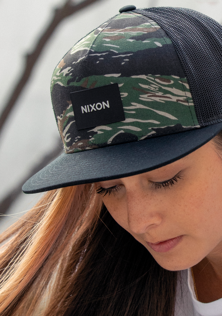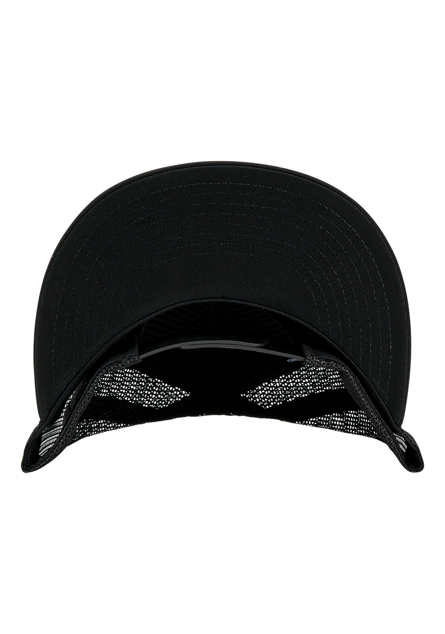 Color blocked, semi-deep trucker with tons of color and pattern combinations. The front panel and bill really pop against the mesh back, and the silicone logo patch on the front gives depth to this handsome headcover.