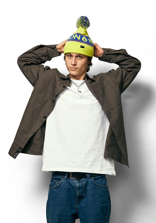 The new Teamster is the go-to beanie for cold winters everywhere. Pom and cuff style with jacquard wordmark logo that's as deep as a December snow drift.