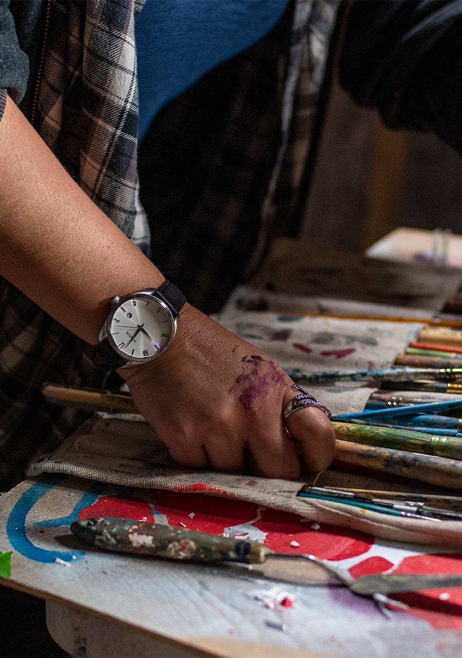 Don’t walk, strut. Thalia is elegant by design, bold by nature. Marrying minimalist design with considered details allows this wrist-piece to provide the time and date in a package that doesn’t distract.