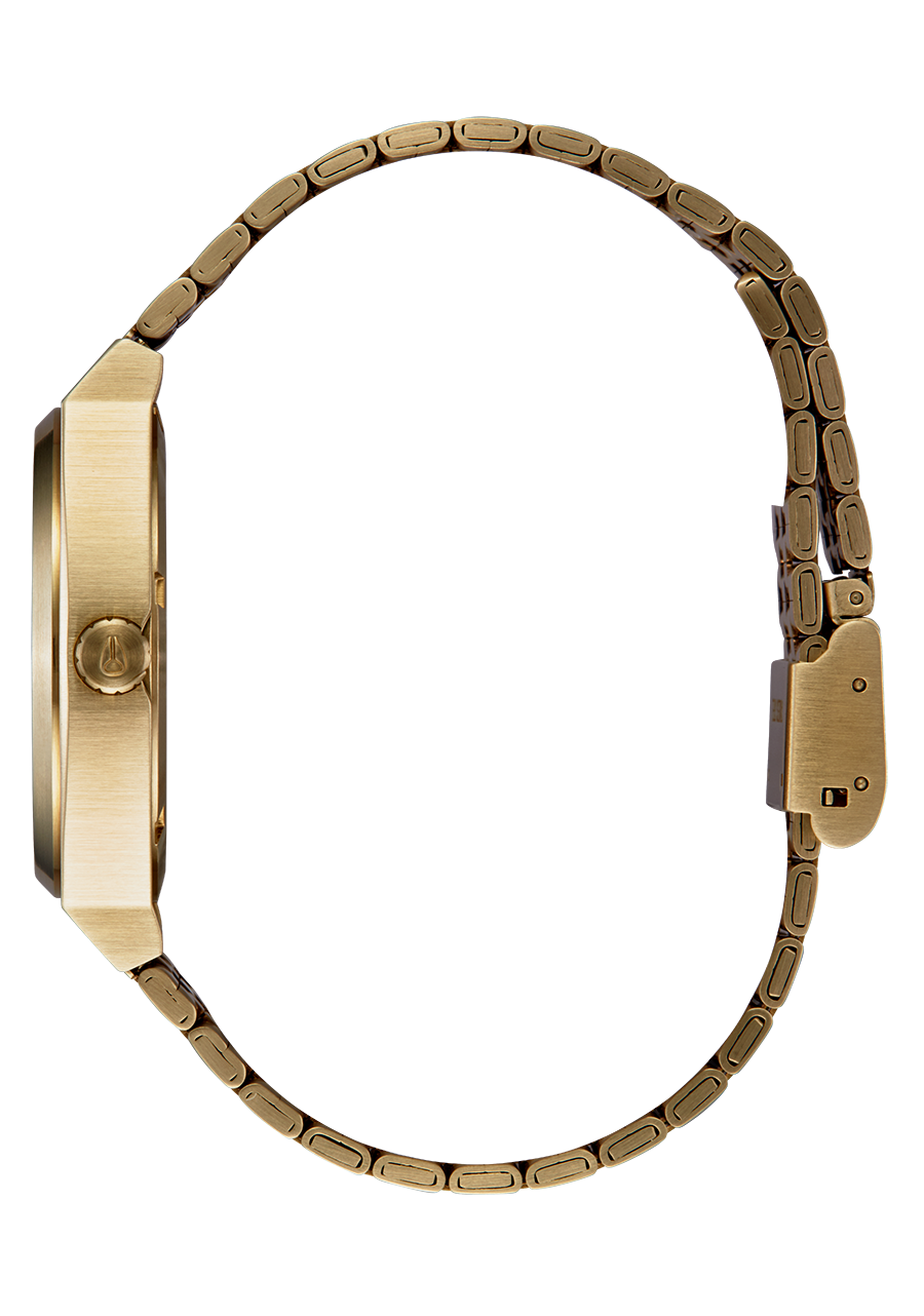 20-18mm tapered custom 5-link stainless steel bracelet and an adjustable stainless steel locking clasp.